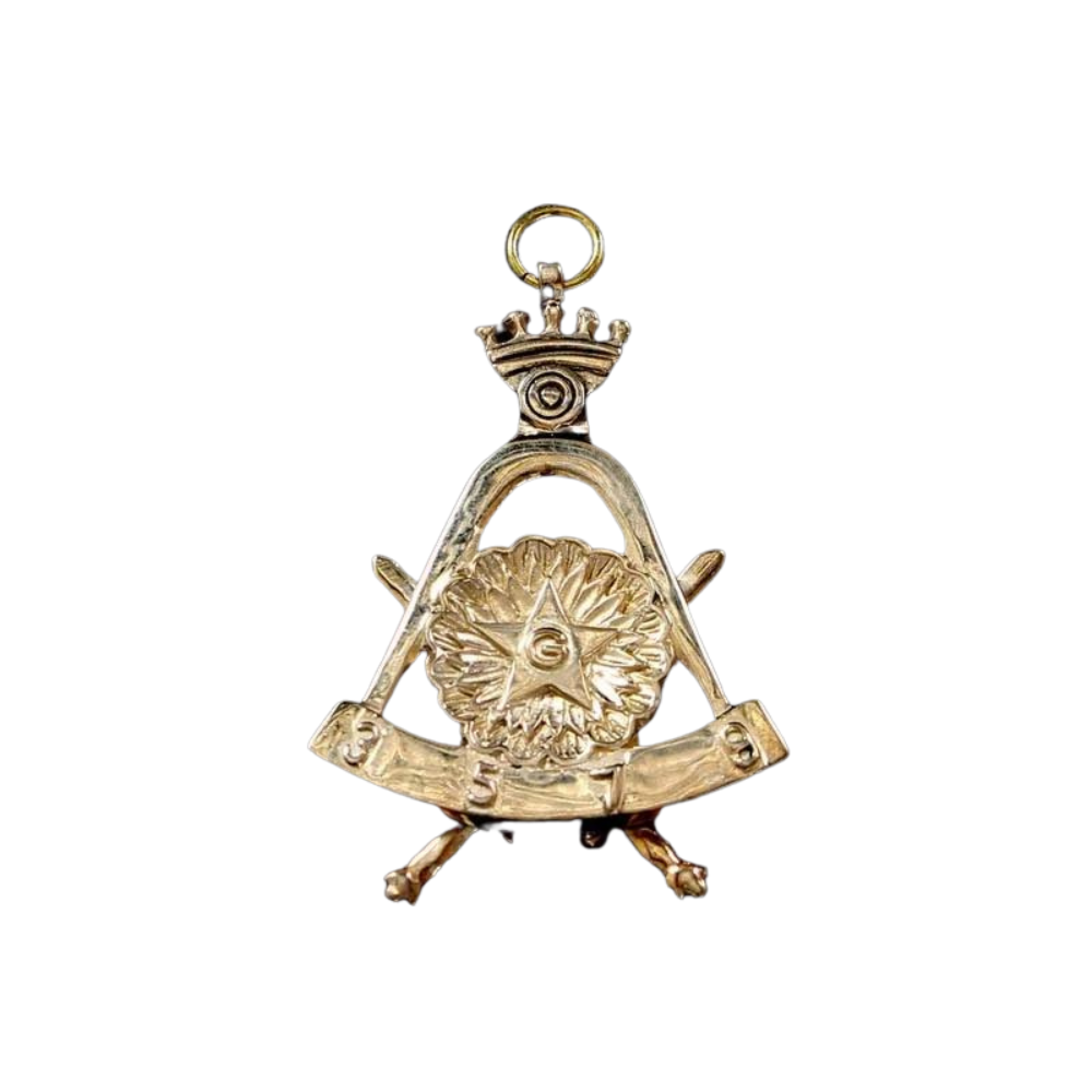 Le bijou du 3° Ordre du Rite Français Traditionnel (RFT) est une pièce remarquable et symbolique, conçue spécialement pour le Chapitre Français. Ce bijou met en valeur les chiffres 3, 5, 7, 9 ainsi que la lettre G dans son soleil, encadrée par le sextant accroché au compas. Au verso, deux épées ajoutent une dimension supplémentaire à ce bijou. Fabriqué en airain, un alliage de cuivre réputé pour sa durabilité et sa résistance, ce bijou est une véritable œuvre d'art maçonnique.
