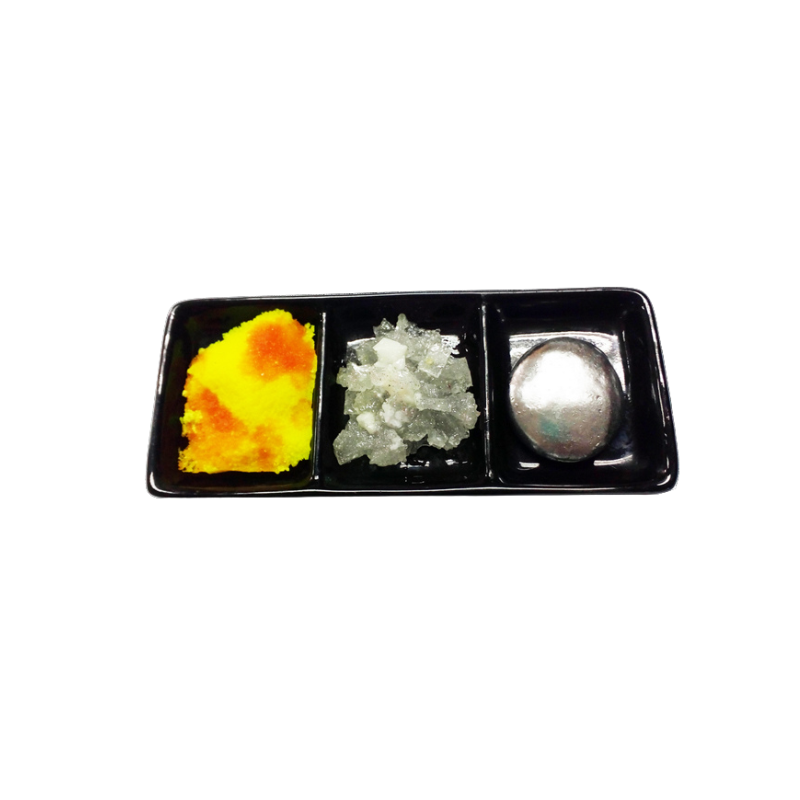 Coupelle Soufre • Sel • Mercure, accessoire maçonnique symbolique illustrant les trois principes alchimiques. Support visuel d’initiation et d’instruction pour le Cabinet de Réflexion ou les travaux symboliques.