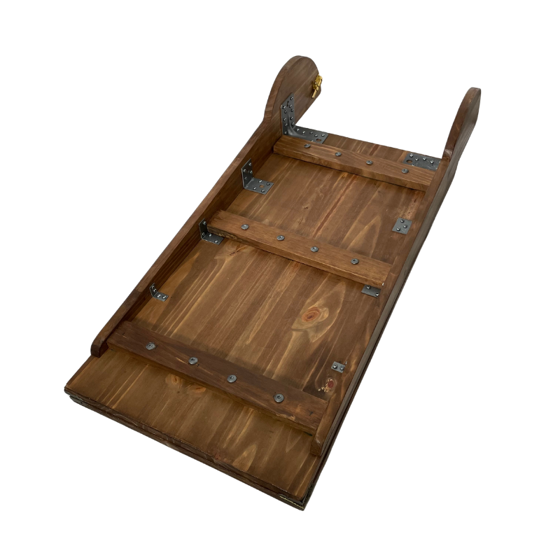 Planche à bascule maçonnique en bois travaillé, fabrication artisanale, pliable et facile à installer/ranger, dimensions 1600 × 400 cm (dépliée). Accessoire rituel pour initiations et travaux symboliques en loge.