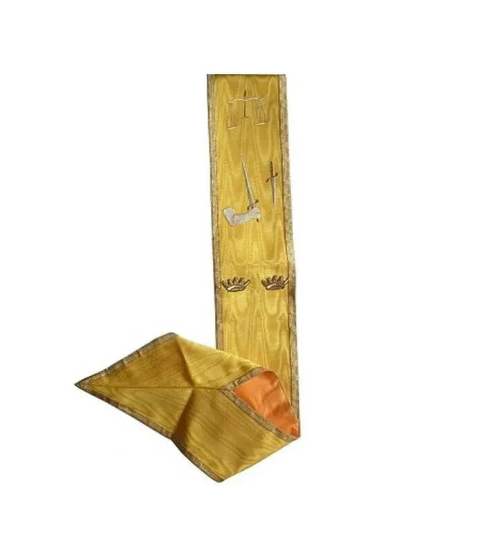 La soie ou le moiré confèrent au baudrier une esthétique raffinée tout en respectant la sobriété rituelle propre au Rite Écossais Ancien et Accepté.