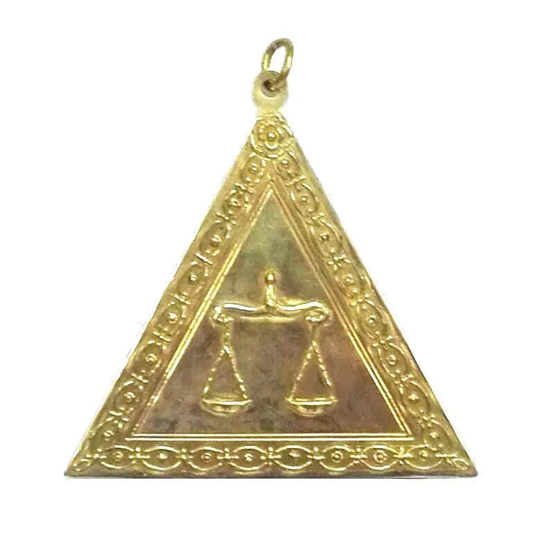 L’airain, matériau traditionnellement utilisé pour les bijoux rituels, confère robustesse, élégance et durabilité, tout en s’accordant visuellement avec l’ensemble des décors initiatiques du Rite Écossais Ancien et Accepté.