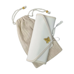 Fabriqué avec des bijoux en airain doré et doté d’une poche de rangement en cuir marquée d’une équerre-compas, cet étui allie élégance, utilité et profondeur symbolique.