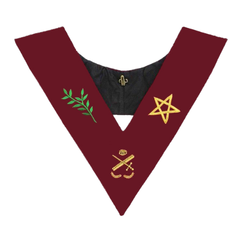 Le Sautoir Expert 14ème degré REAA est un décor rituel destiné à l’officier exerçant la fonction d’Expert au 14ème degré du Rite Écossais Ancien et Accepté (REAA). Conçu selon les usages traditionnels du REAA, ce sautoir est réalisé en velours cramoisi bordeaux, matière noble et symboliquement forte, parfaitement adaptée aux tenues, cérémonies et travaux rituels propres à ce haut degré.