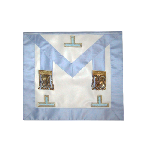 Les trois taus constituent un marqueur symbolique fort associé à la fonction de Vénérable Maître, tandis que les deux pendeloques renforcent la dimension rituelle et la présence visuelle du tablier, dans le respect des usages traditionnels du RER.