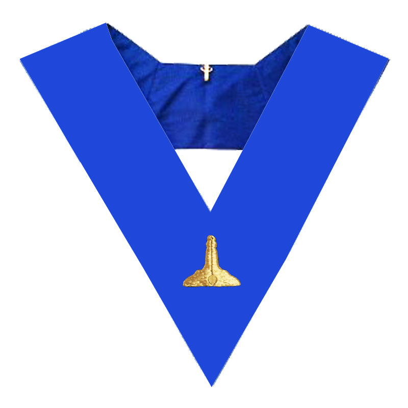 Sautoir Premier Surveillant Rite de York, disponible en soie ou moiré. Attribut rituel symbolique incarnant responsabilité, soutien et harmonie au sein de la fonction de Premier Surveillant.