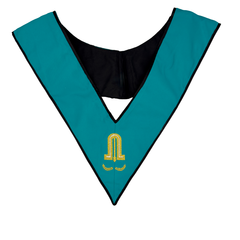 Porté en sautoir, ce décor distingue le Second Surveillant et rappelle sa mission de soutien, de vigilance et de coopération avec les autres officiers. Il incarne l’esprit d’entraide et de responsabilité qui caractérise cette charge. Conforme aux usages du REAA, le sautoir s’harmonise avec les autres décors rituels du grade, tout en affirmant l’identité et la fonction de l’officier au sein de l’atelier.