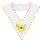 Le Sautoir 31ème degré REAA - Souverain Grand Inspecteur Général est un attribut rituel destiné à accompagner la tenue du frère élevé au 31ᵉ degré du Rite Écossais Ancien Accepté (REAA). Confectionné dans des étoffes nobles, disponibles en soie ou en moiré, ce sautoir allie élégance, sobriété et profondeur symbolique, en parfaite adéquation avec la dignité de ce haut degré.