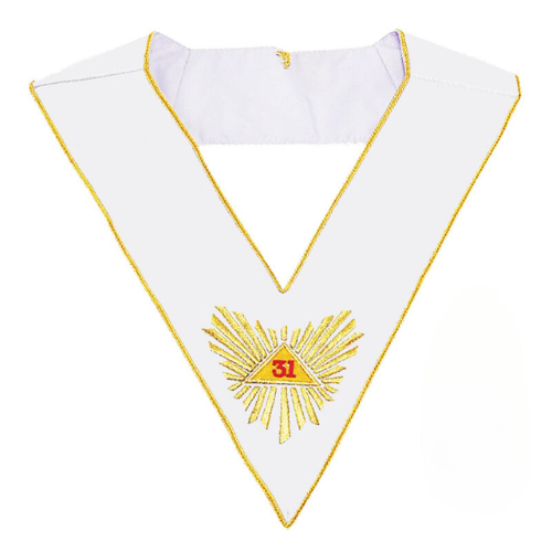 Sautoir 31ème degré REAA - Souverain Grand Inspecteur Général, disponible en soie ou moiré. Attribut rituel symbolisant vigilance, justice et maturité initiatique au sein du Rite Écossais Ancien Accepté.
