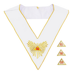 Le Sautoir 32ème degré REAA - Souverain Grand Inspecteur Général est un attribut rituel conçu pour accompagner la tenue du frère investi du 32ᵉ degré du Rite Écossais Ancien Accepté (REAA). Réalisé dans des étoffes nobles disponibles en soie ou en moiré, ce sautoir allie élégance, sobriété et symbolisme. Il répond aux exigences visuelles et rituelles propres aux hauts degrés du REAA.