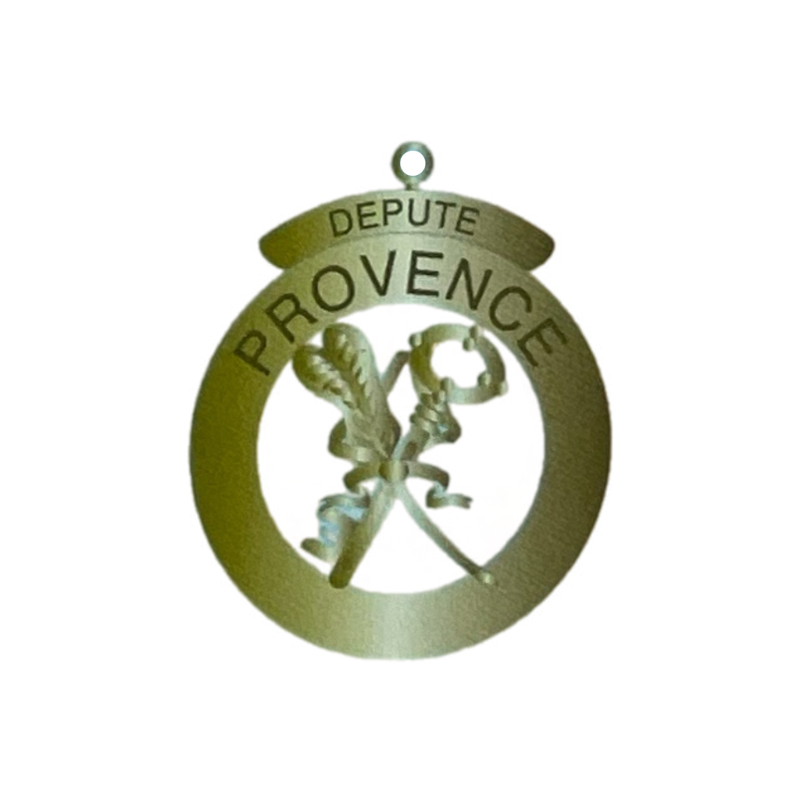 Le Bijou Fonction Provincial pour la Grande Loge Nationale Française (GLNF) est une médaille en airain finement travaillée, destinée aux officiers provinciaux. Chaque bijou est orné de l’emblème spécifique de la province et de la fonction occupée, symbolisant le rôle et les responsabilités de l'officier au sein de l'organisation maçonnique.